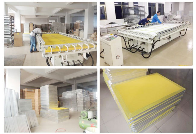 Our screen printing frames are feature of appearance, free of deformation, and durable in use. Argon arc welding technique to ensure watertight and ground flat. Stretched with top quality low elongation polyester mesh and bonded with highest chemical resistance glue.