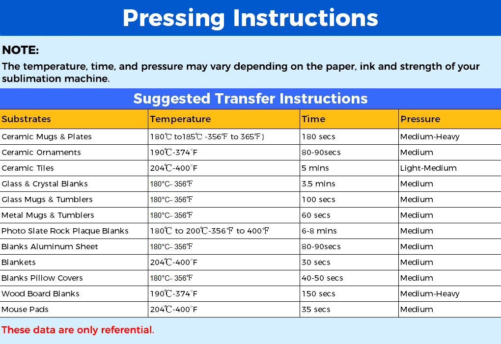 · Suggested Temp & Time: 210°C & 35secs