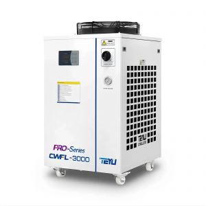 CWFL-3000 water chiller developed by S&A is made especially for fiber laser applications up to 3KW. It highlights a dual circuit configuration. Two temperatures can be supplied from one single chiller unit for the fiber laser and the laser head, indicating up to 50% space saving comparing with the two-chiller solution.