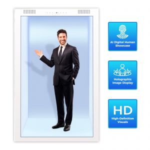 4. Digital Human Virtual Display: The transparent cabinet can realistically showcase digital human virtual beings, enhancing their realism and interactivity, for instance, used for displaying virtual tour guides, virtual sales consultants, etc.
